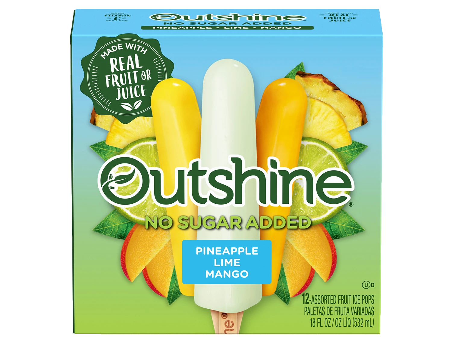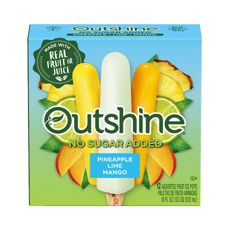 Every bite of an Outshine® No Sugar Added Fruit Bar tastes like biting into a piece of ripe fruit or juice. Made with real fruit or juice, it's the snack that refreshes you from the inside out.