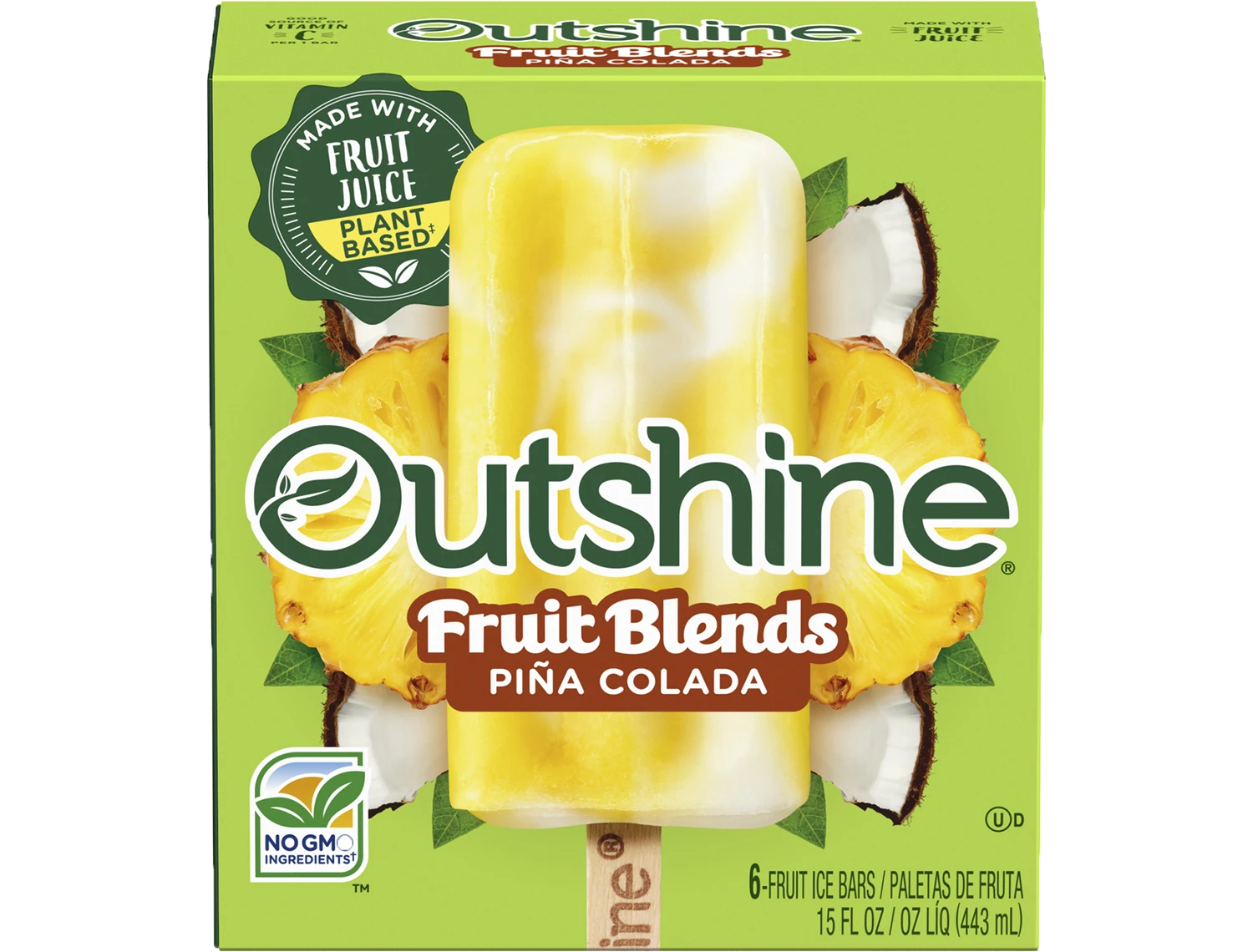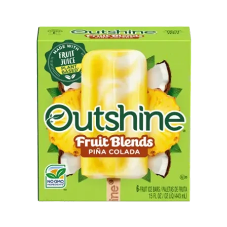 Outshine® Fruit Blends swirl together perfectly paired fruit flavors to create works of yum - visually stunning, mouthwatering frozen fruit bars. Each bar is crafted with its own unique swirl: Piña Colada combines tangy Pineapple with non-dairy Coconut cream. Get ready for a burst of deliciousness with every bite!
